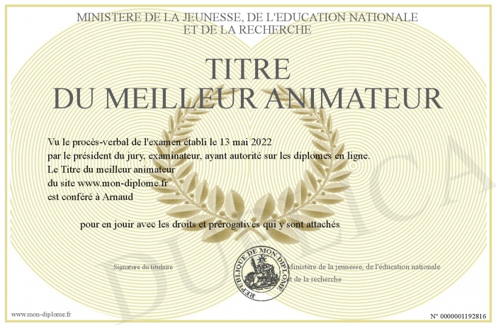Envoyez par email votre Titre du meilleur animateur personalisé