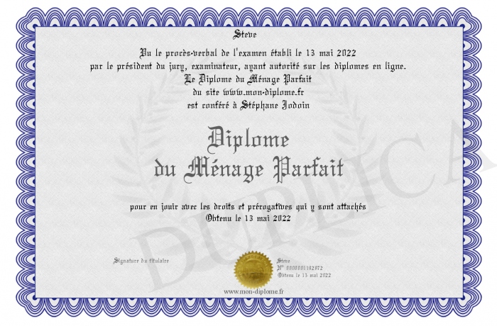 Envoyez par email votre Diplôme du Ménage Parfait personalisé
