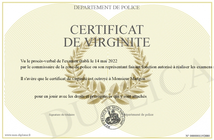 Envoyez par email votre Certificat de Virginité personalisé