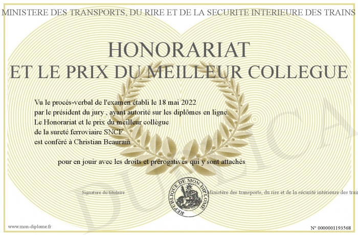 Envoyez par email votre Honorariat et le prix du meilleur collègue personalisé