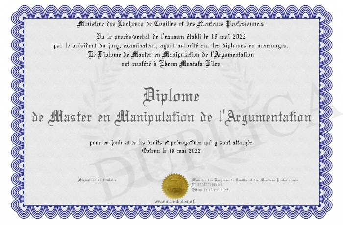 Envoyez par email votre Diplôme de Master en Manipulation de l'Argumentation personalisé
