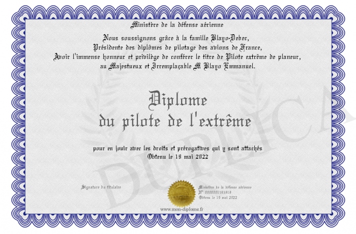 Envoyez par email votre Diplôme du pilote de l'extrême personalisé