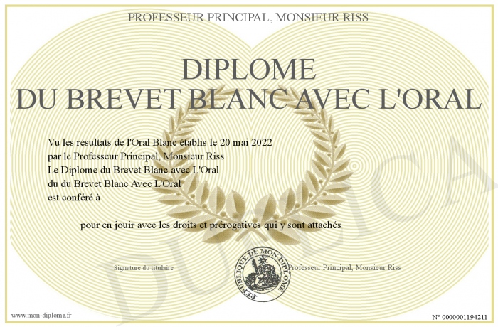 Envoyez par email votre Diplôme du Brevet Blanc avec L'Oral personalisé