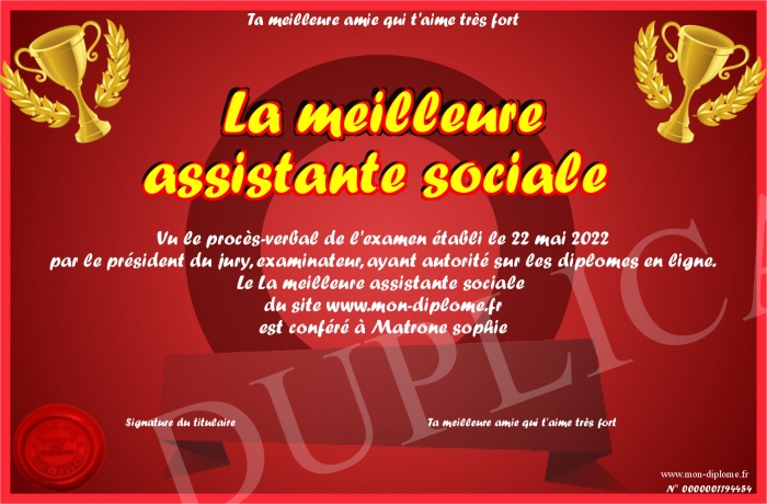 Envoyez par email votre La meilleure assistante sociale personalisé