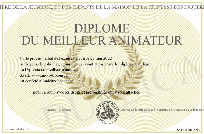 Envoyez par email votre Diplôme du meilleur animateur personalisé