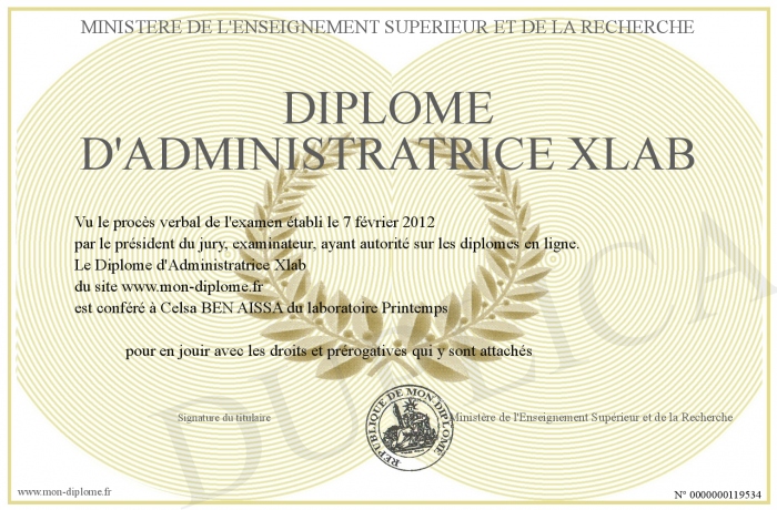 Envoyez par email votre Diplôme d'Administratrice Xlab personalisé