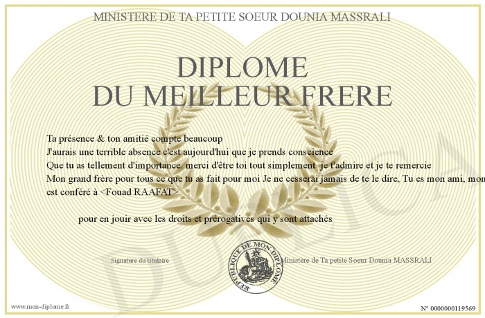 Envoyez par email votre Diplôme du meilleur Frère personalisé