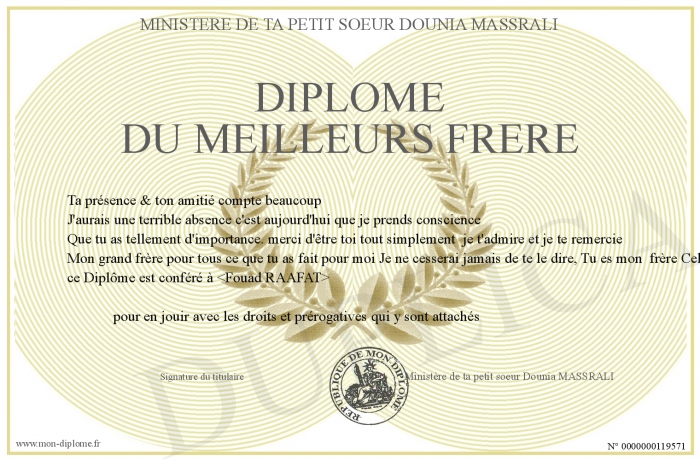 Envoyez par email votre Diplôme du meilleurs frère personalisé