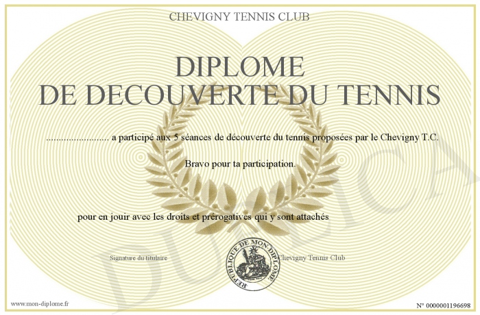 Envoyez par email votre diplôme de découverte du tennis personalisé