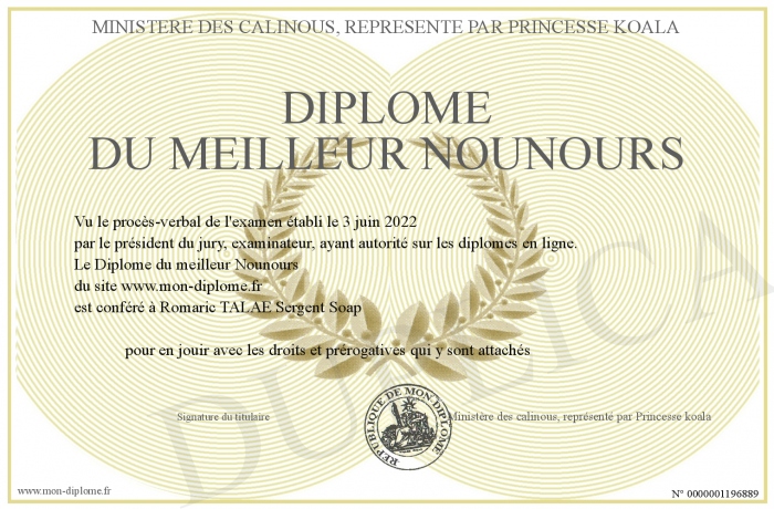 Envoyez par email votre Diplôme du meilleur Nounours personalisé