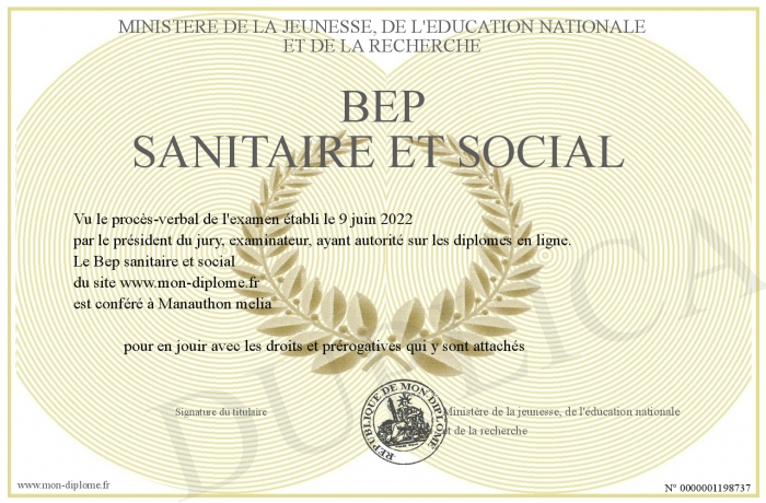 Envoyez par email votre Bep sanitaire et social personalisé