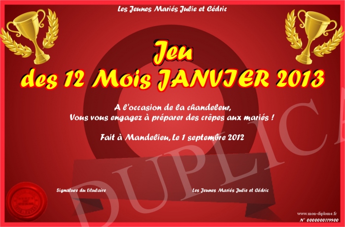 Envoyez par email votre Jeu des 12 Mois JANVIER 2013 personalisé