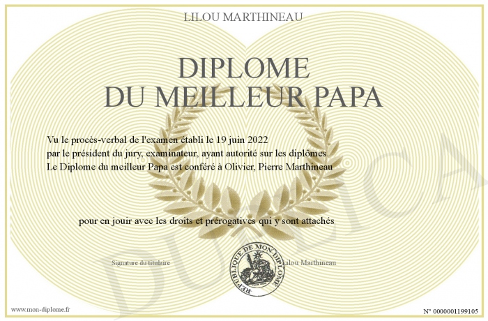 Envoyez par email votre Diplôme du meilleur Papa personalisé