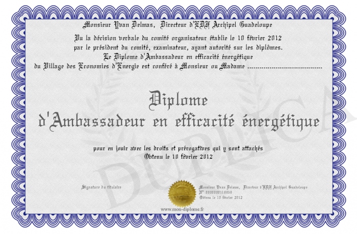 Envoyez par email votre Diplome d'Ambassadeur en efficacité énergétique personalisé