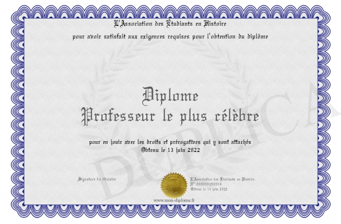 Envoyez par email votre Diplôme Professeur le plus célèbre personalisé