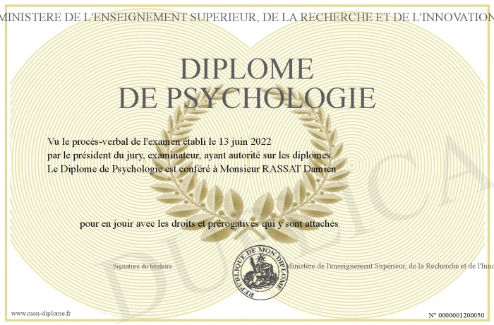 Envoyez par email votre Diplôme de Psychologie personalisé