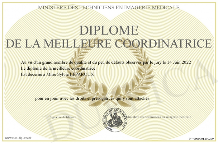 Envoyez par email votre Diplôme de la Meilleure Coordinatrice personalisé