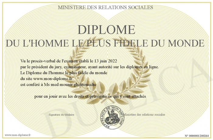 Envoyez par email votre Diplôme du l'homme le plus fidèle du monde personalisé