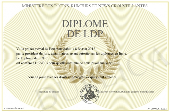 Envoyez par email votre Diplôme de LDP personalisé