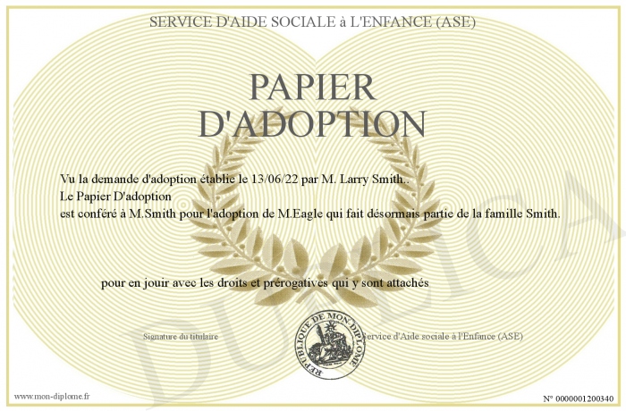 Envoyez par email votre Papier D'adoption personalisé