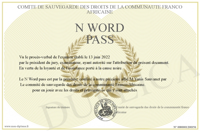Envoyez par email votre N Word pass personalisé