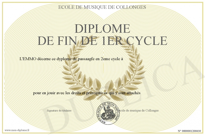 Envoyez par email votre Diplôme de fin de 1er cycle personalisé