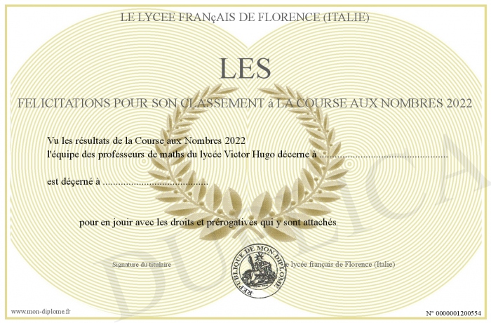 Envoyez par email votre les félicitations pour son classement à la course aux nombres 2022 personalisé