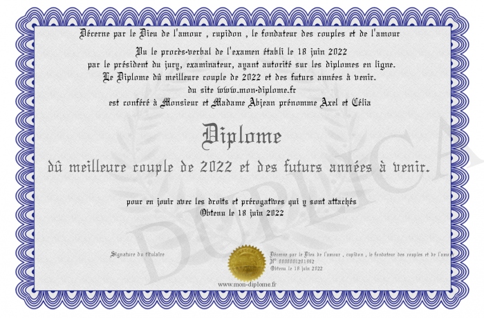 Envoyez par email votre Diplôme dû meilleure couple de 2022 et des futurs années à venir. personalisé