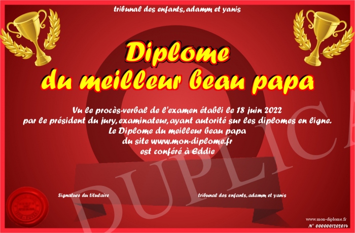 Envoyez par email votre Diplôme du meilleur beau papa personalisé