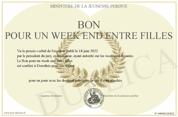 Envoyez par email votre Bon pour un week end entre filles personalisé