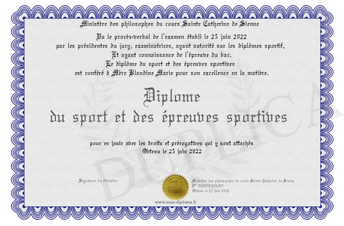 Envoyez par email votre Diplôme du sport et des épreuves sportives personalisé