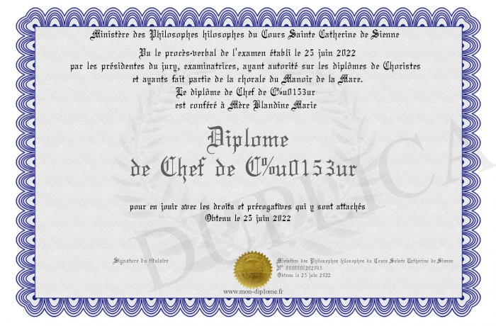 Envoyez par email votre Diplôme de Chef de Coeur personalisé