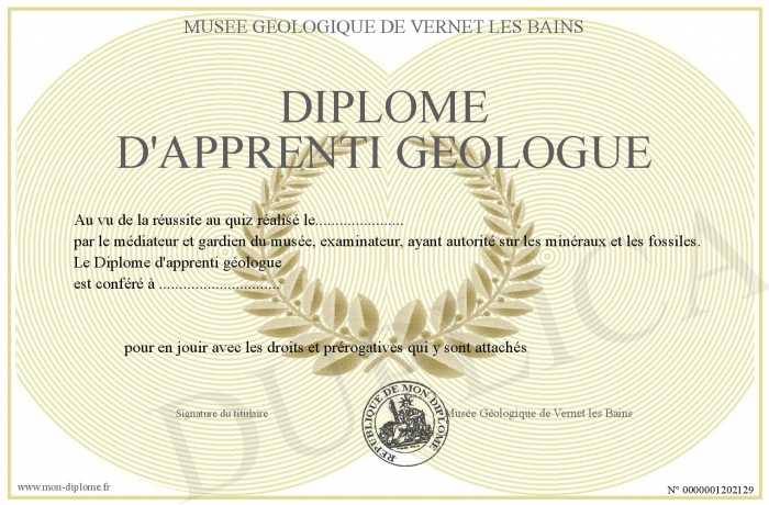Envoyez par email votre Diplôme d'apprenti géologue personalisé