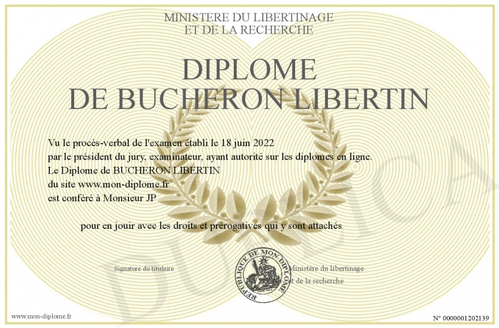Envoyez par email votre Diplôme de BUCHERON LIBERTIN personalisé