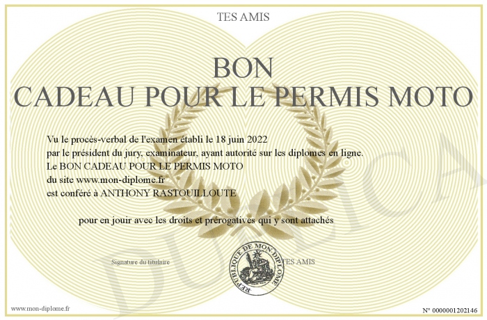 Envoyez par email votre BON CADEAU POUR LE PERMIS MOTO personalisé