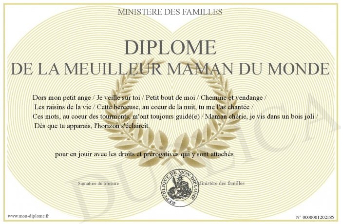 Envoyez par email votre Diplôme de la meuilleur maman du monde personalisé