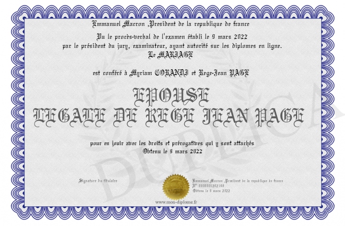 Envoyez par email votre EPOUSE LEGALE DE REGE JEAN PAGE personalisé