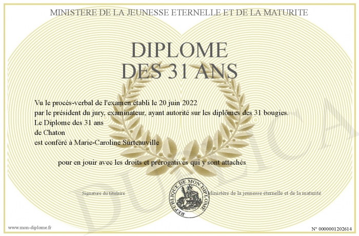 Envoyez par email votre Diplôme des 31 ans personalisé