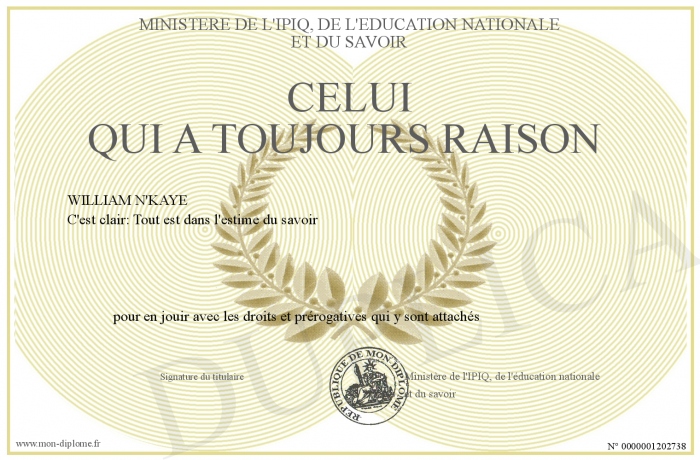 Envoyez par email votre Celui qui a toujours raison personalisé