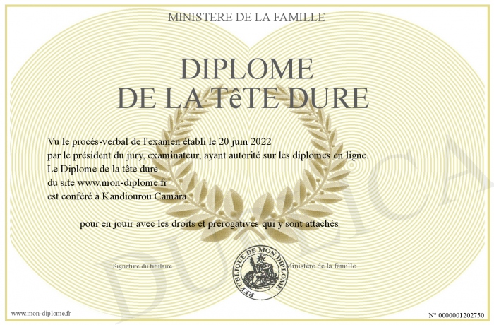 Envoyez par email votre Diplôme de la tête dure personalisé