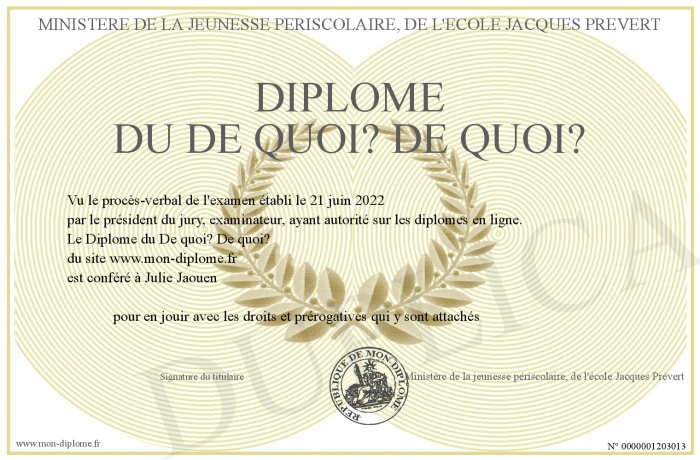 Envoyez par email votre Diplôme du De quoi? De quoi? personalisé