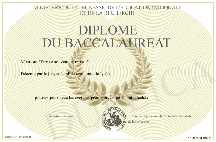 Envoyez par email votre Diplôme du baccalauréat personalisé