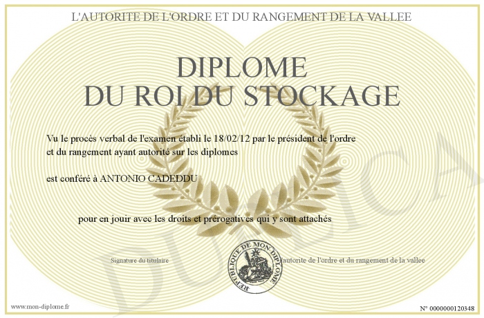 Envoyez par email votre Diplôme du roi du stockage personalisé