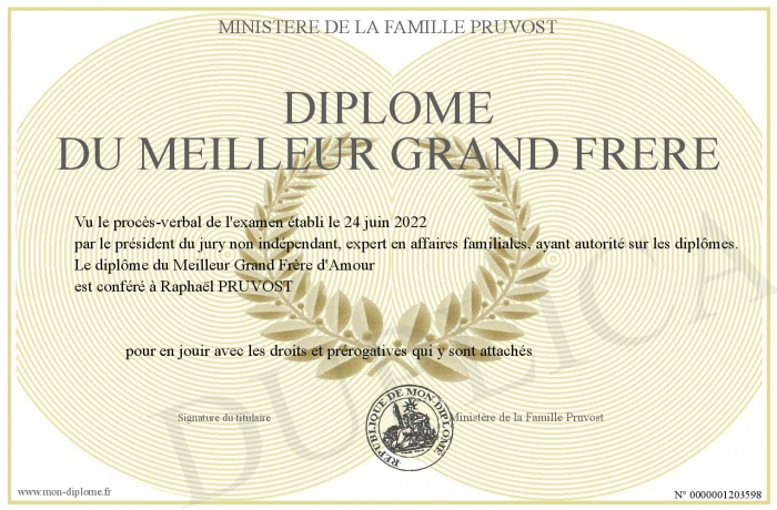 Envoyez par email votre Diplôme du Meilleur Grand Frère personalisé