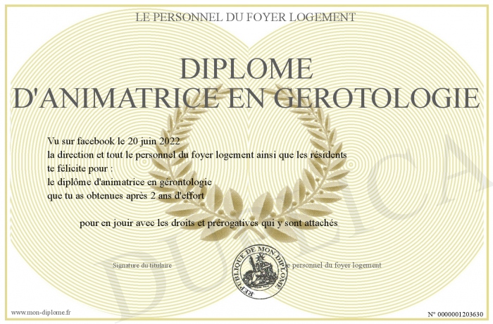 Envoyez par email votre Diplôme d'animatrice en gérotologie personalisé