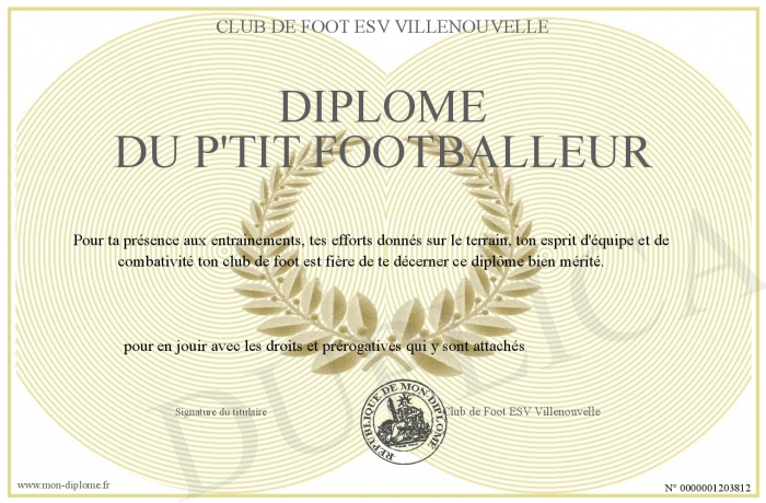 Envoyez par email votre Diplôme du P'tit Footballeur personalisé