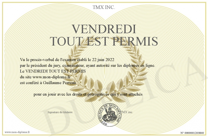 Envoyez par email votre VENDREDI TOUT EST PERMIS personalisé