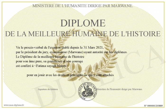 Envoyez par email votre Diplôme de la meilleure humaine de l'histoire personalisé
