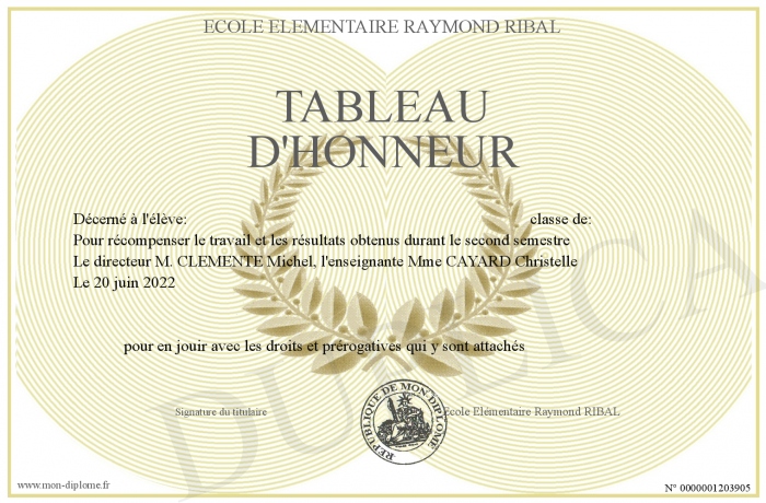 Envoyez par email votre Tableau d'Honneur personalisé