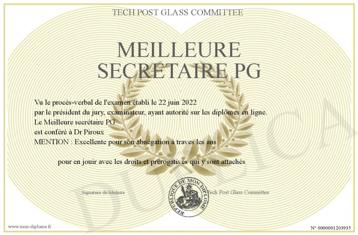 Envoyez par email votre Meilleure secrétaire PG personalisé